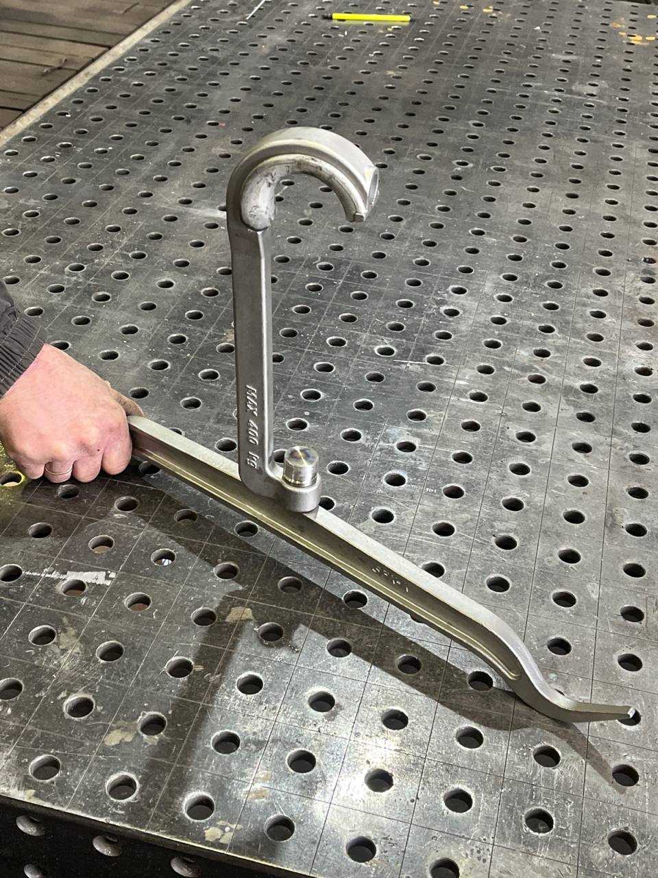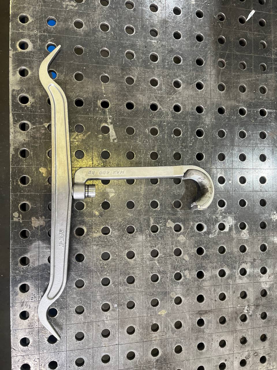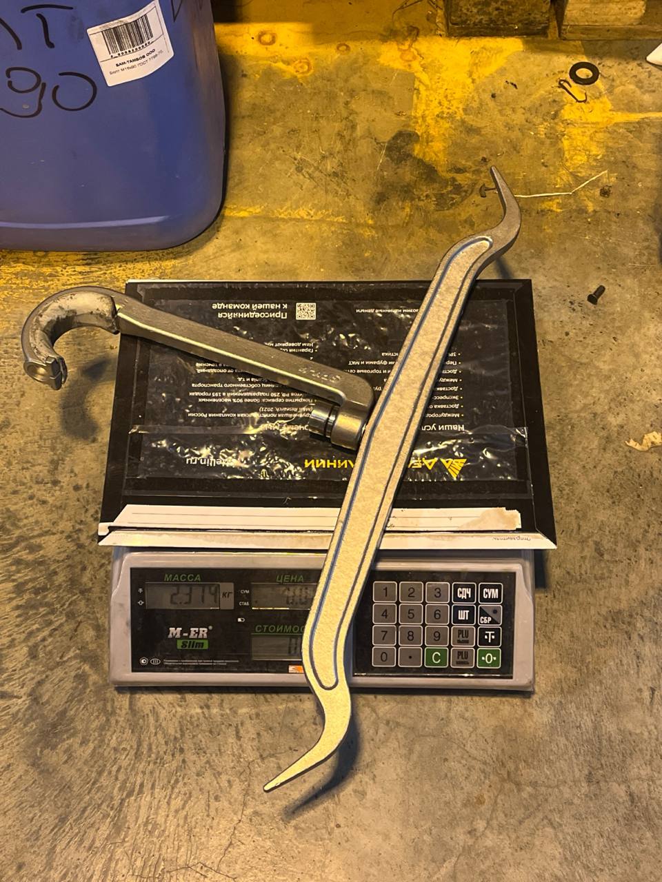 "Плечики" выполнены в форме двутавра, что придает разноге прочность, ведь она рассчитана к работе с тушами до 400 кг.